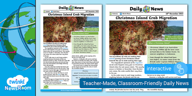 News Story For Kids 9 11 Christmas Island Crab Migration